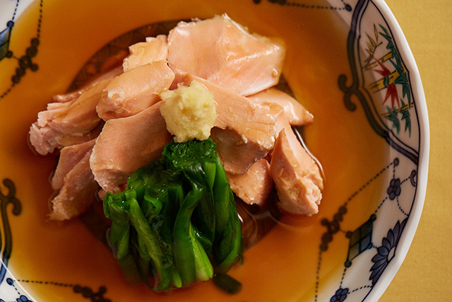4. Arrange the fish and chives in a bowl, then pour over the ankake sauce. Lastly, garnish the fish with grated ginger.