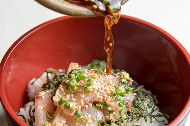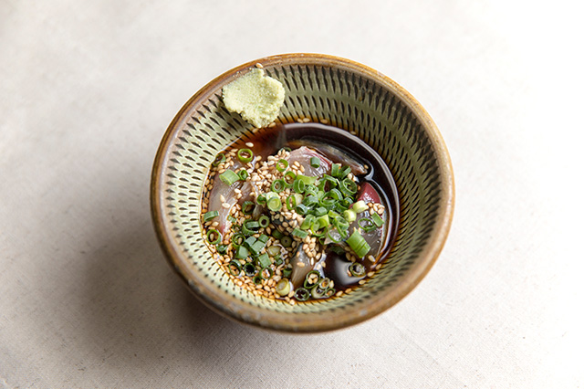 5. Place the yellowtail on a dish and pour a little of the sauce over the yellowtail. Sprinkle with small chopped green onions.