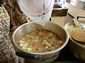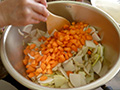 3. When the radish is oiled, add burdock root, carrot, and taro in that order and stir-fry.