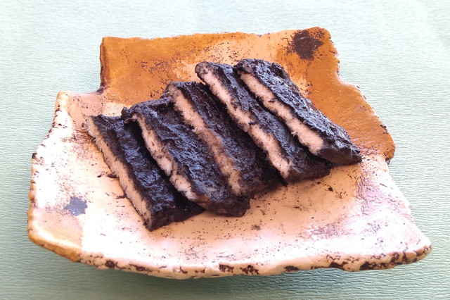 1. Roast black sesame seeds and grind them well in a mortar until oil comes out, then add sugar, mirin, and soy sauce and grind further to make a thick sesame paste.