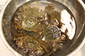 8. When the crab gets collect in the Katsuona leaf and the broth becomes clear, season with light soy sauce.