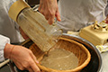 7. When the liquid in the pot starts to become inpure, add Katsuona leaf.