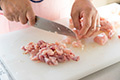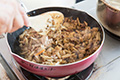 4. When chicken changes color, add gobou (=burdock) and saute.