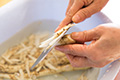 2. Shaved gobou (=burdock) and soak in water to remove scum.