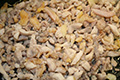 3. Use the fat from the chicken meat or some oil and heat it in a pan. Add the chicken meat and stir fry.