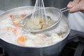 1. Put water and kombu (cut into strips) in a pan and leave for a while.