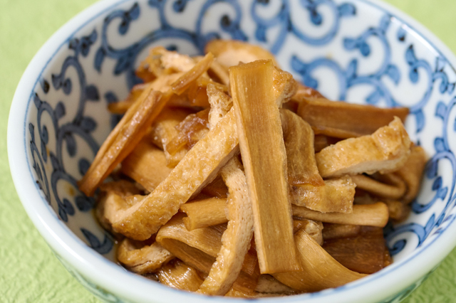 3. Put seasoning A into a pan, and simmer ‘zuiki’ and thin fried tofu.