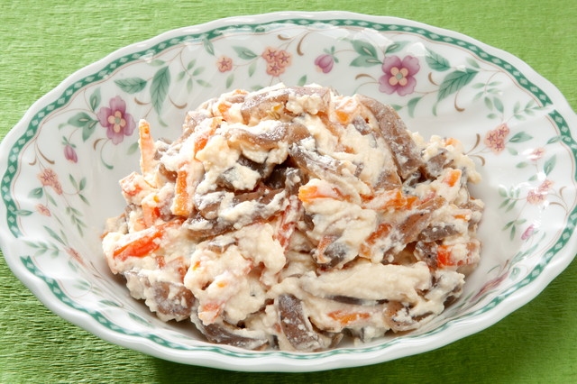 4. Add simmered konjac and carrot into 3, then mix them to serve.