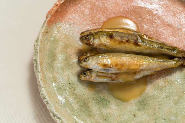 1. Rinse "moroko" and skewer into upper chest of fish. Grill on a gas grill, being careful not to overcook it.