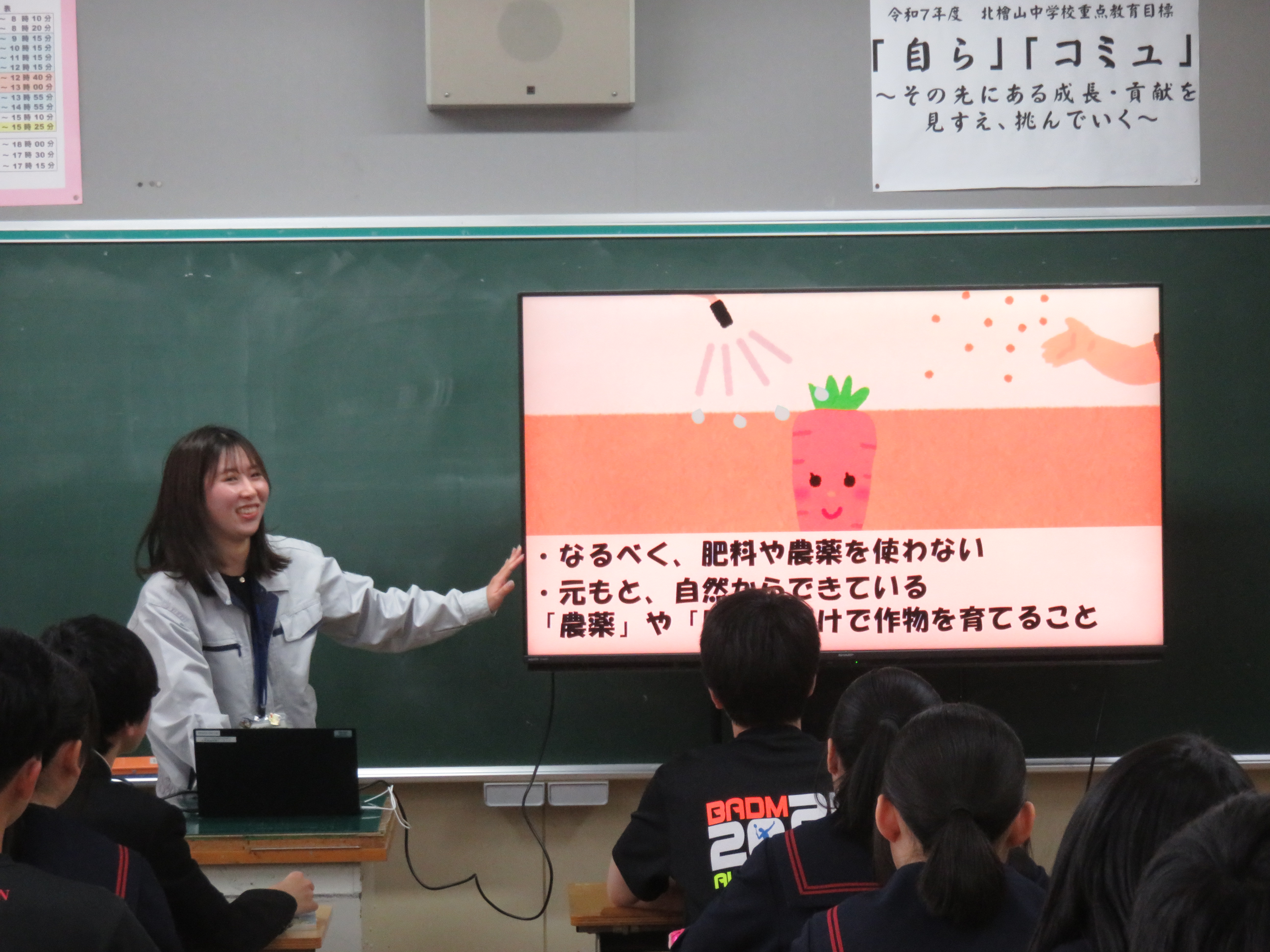 令和7年12月9日(火曜日)、せたな町では、町内の全中学校(北檜山中学校2年生、瀬棚中学校全校生徒、大成中学校全校生徒)を対象に、有機農業を実践する農業者等を講師とした総合学習が行われました。