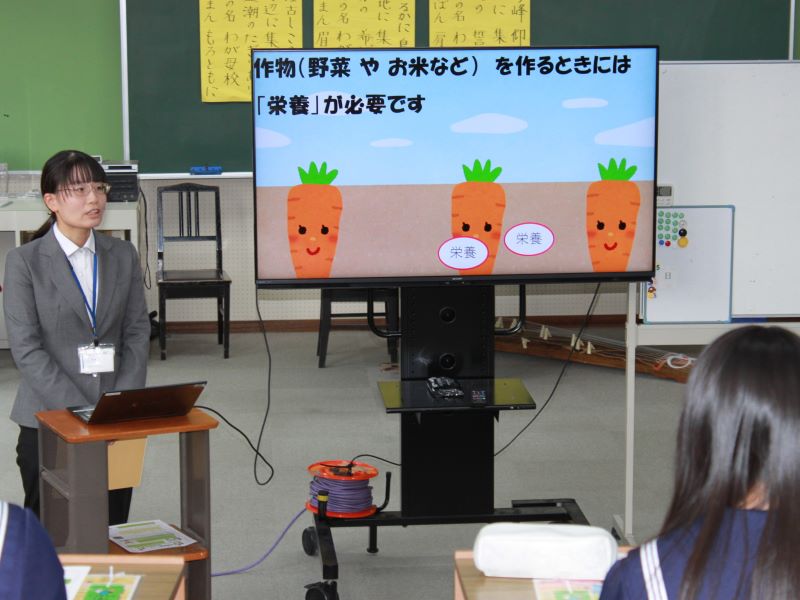 各校では、檜山振興局の職員から、「有機農業とは何か」、「せたな町の有機農業」等について、有機農業に取り組む生産者からは、「自身の経験を交えた有機農業」に関する説明がありました。