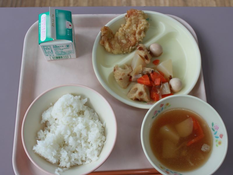 当日の給食(せたな町の全小中学校)では、せたな町産の有機栽培米「ゆめぴりか」のごはんと、有機栽培大豆及び米を原料とした味噌を使用した「みそおでん」が提供され、生徒たちは、おいしそうに味わって食べていました。