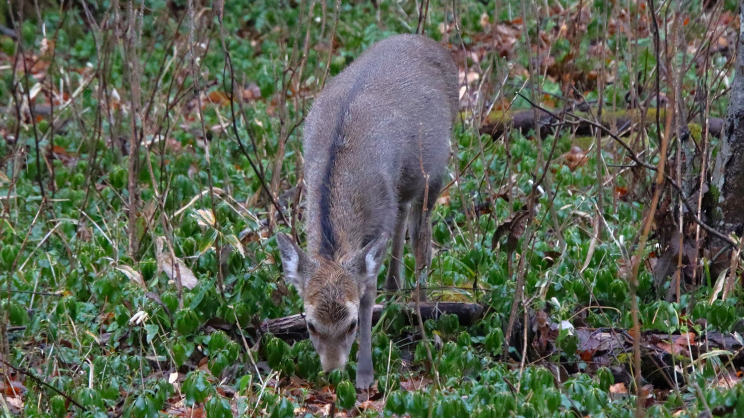 晩秋の阿寒湖周辺の森で、エゾシカの群れに出会いました。
