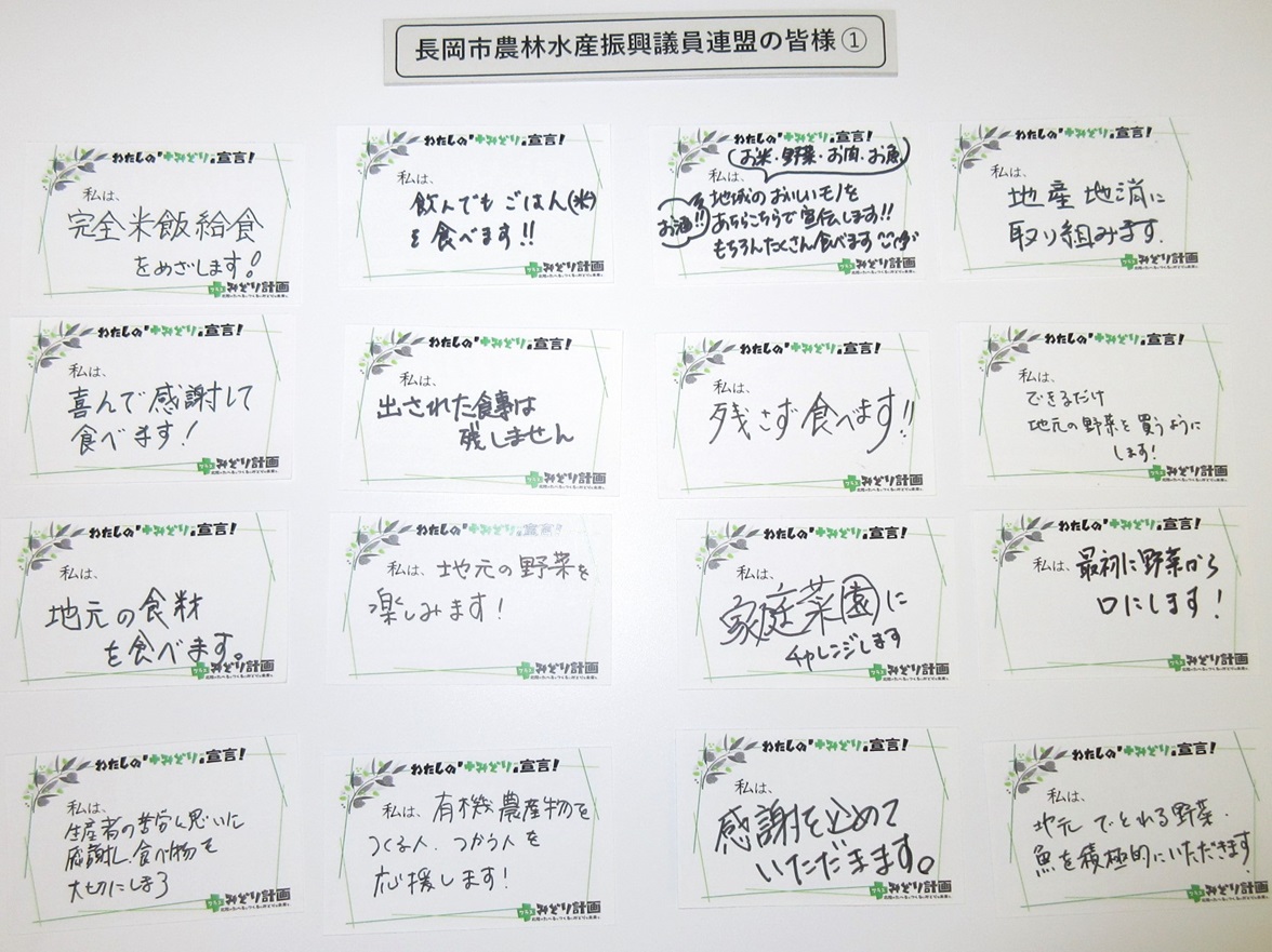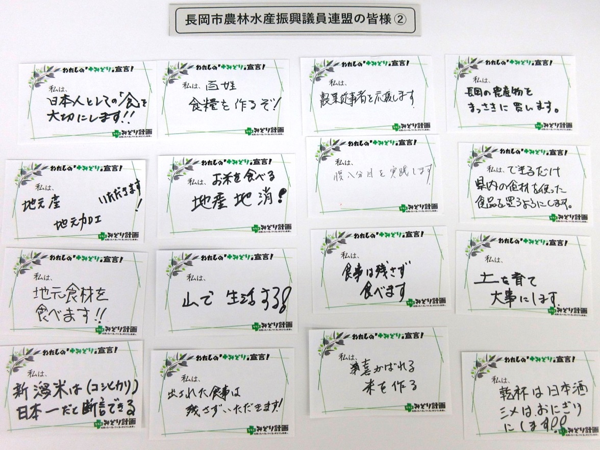 議員の皆様には、「+みどり計画」の一環である、わたしの「+みどり宣言」をカードに記入していただき、各自名刺入れ等での持参をお願いしました。