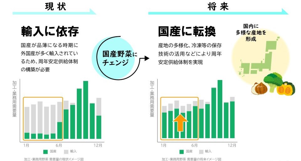 国産野菜シェア拡大プロジェクトの詳細についてはこちら!(農林水産省へリンク)