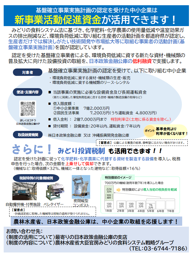 みどりの食料システム法に基づく融資の特例