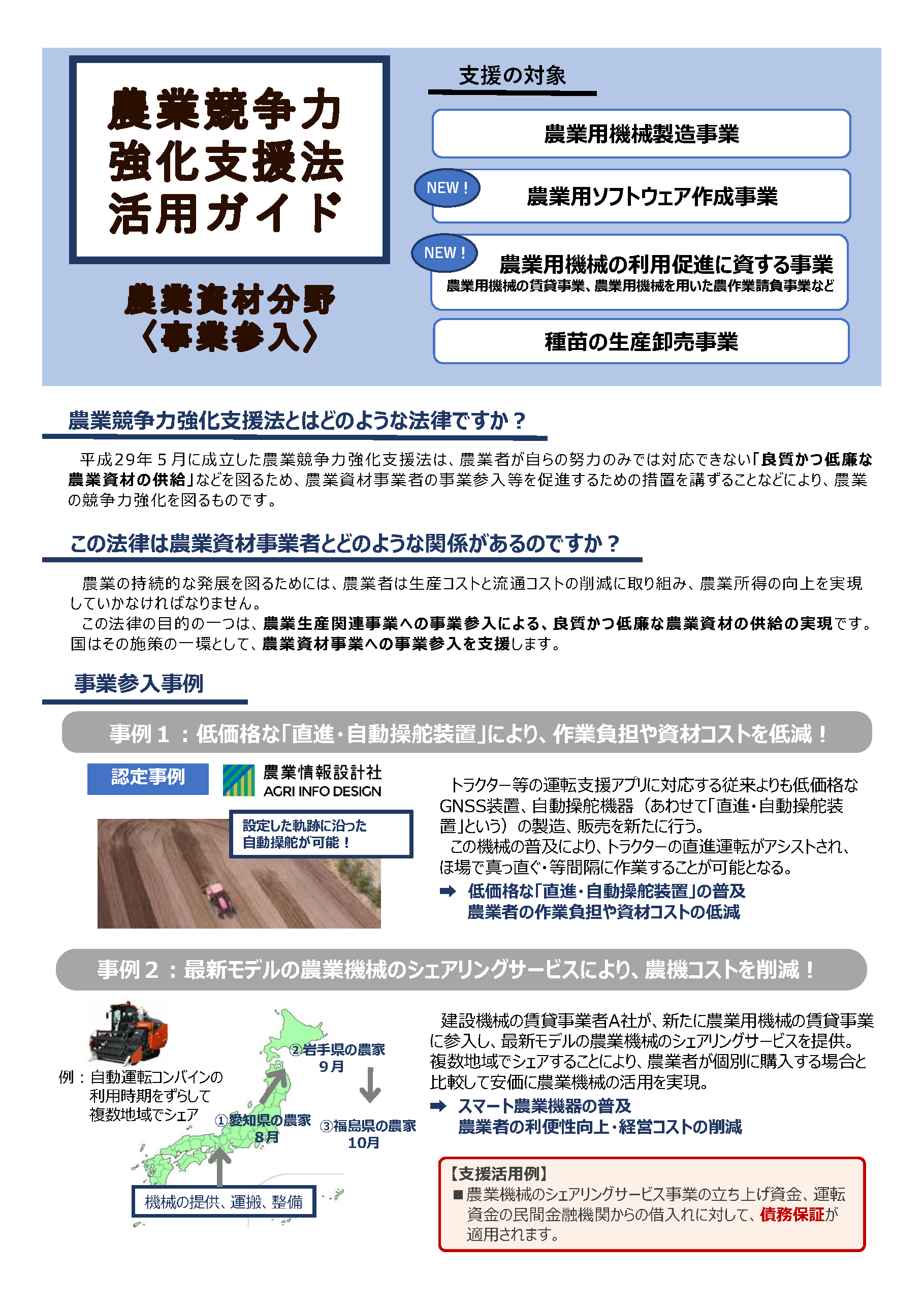 農業競争力強化支援法第9条及び第12条に基づく農業資材事業及び農産物流通等事業における事業再編の促進に向けて、