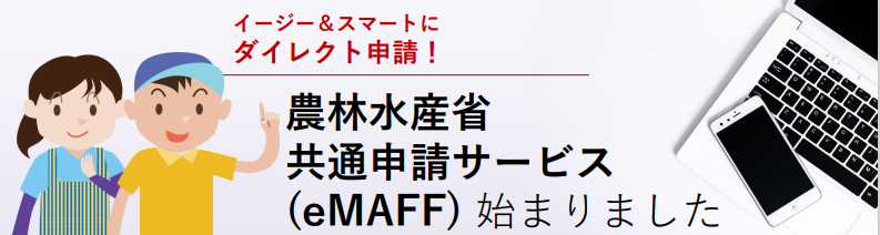 農林水産省共通申請サービス(eMAFF)によるオンライン申請も可能です!詳細はこちら(PDF : 1,154KB)
