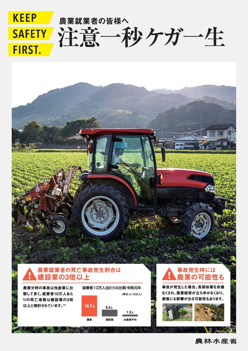 農林水産業・食品産業や食品産業の現場では、他の産業と比べても作業事故の発生率が高い傾向にあります。農林水産業・食品産業が継続して発展するためには、若者が未来を託せる安全な職場にしなくてはなりません。