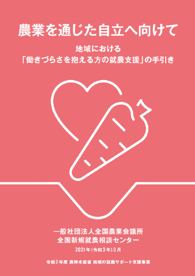 ![]() 地域における「働きづらさを抱える方の就農支援」の手引き」(PDF : 3,890KB) |
