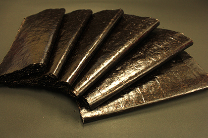 佐賀県、福岡県、長崎県、熊本県に囲まれた有明海は、干潮と満潮が日に2回ずつ起こり、その干満差は6~7mと日本一。干潮時の干潟の面積も日本最大を誇る。そんな有明海は、大小計112もの河川が流れ込んでおり、それにより適度な濃さの海水を持ち、栄養を豊富に含む。干満差によって海水と日光を交互にたっぷりと吸収できることからも、海苔の養殖に適した地だ。ここで生産された海苔は、板海苔として出荷されるほか、海苔の佃煮などに使用される。