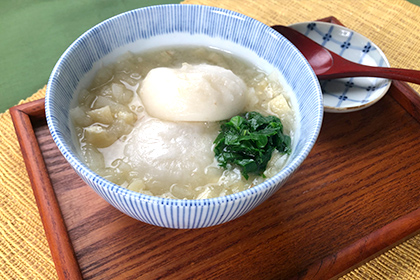 佐賀県と言えば“焼き物”のイメージが浸透するほどの焼き物の産地で、有田焼、伊万里焼、唐津焼、輪島焼が有名。中でも有田町の有田焼は、17世紀初頭に製造が始まり、現在も古くからの釜が残っており、特に知られた存在だ。陶磁器の窯焚きは、1000度以上に窯の温度を上げて窯の中の酸素濃度を調整しながら行うもので、焼成には30~50時間もかかると言われている。その間に火の番をする職人たちの夜食として伝わるのが「ゆきのつゆ」という汁物だ。粗く下ろしたダイコンと餅を味噌汁に入れたもので、寒い火の番のお供として食べられていたとされる。また、有田では豆乳に葛やデンプンを加えて固めた「呉豆腐のごま醤油かけ」も郷土料理として伝わる。