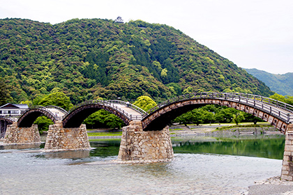 県内でも特に風光明媚な岩国市。5連の木造アーチ橋で国指定の名勝「錦帯橋」を有することでも知られている。この地は、江戸時代には吉川氏が治める岩国領の城下町で、大政奉還後の慶応4年に岩国藩となった。城下町らしい郷土食として今も残るのが、江戸時代から栽培されているという岩国れんこんを使った「岩国寿司」だ。