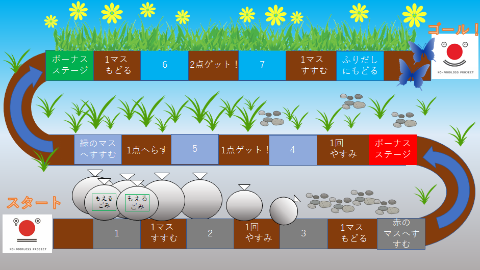 食品ロスに関するクイズに答えてゴールを目指し、最高得点を取ろう!