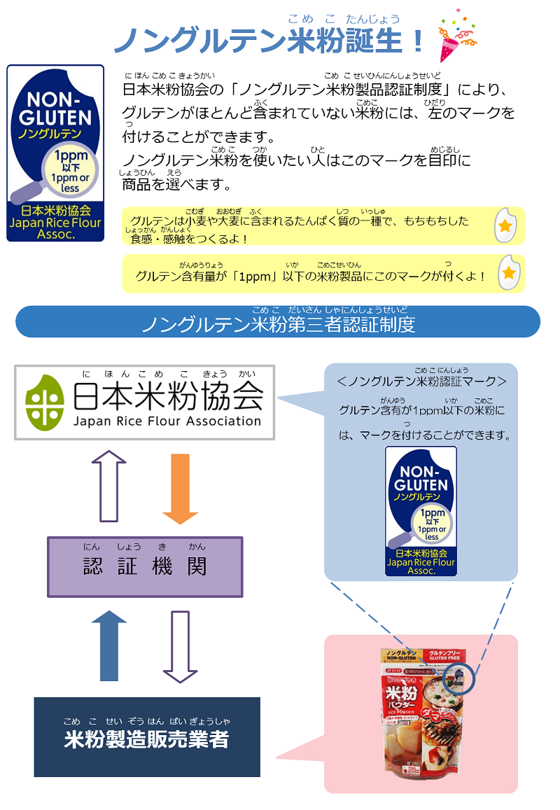 - 【日本米粉協会(にほんこめこきょうかい)】国内産(こくないさん)米粉(こめこ)総合(そうごう)情報(じょうほう)サイト<米粉(こめこ)レシピ>(外部リンク)
