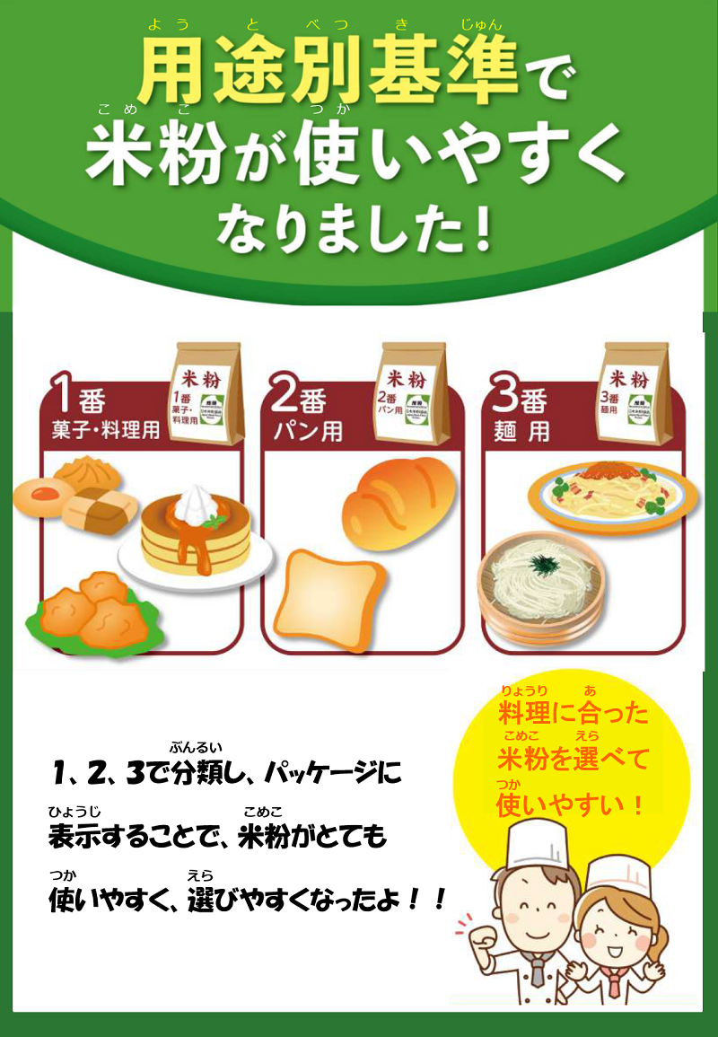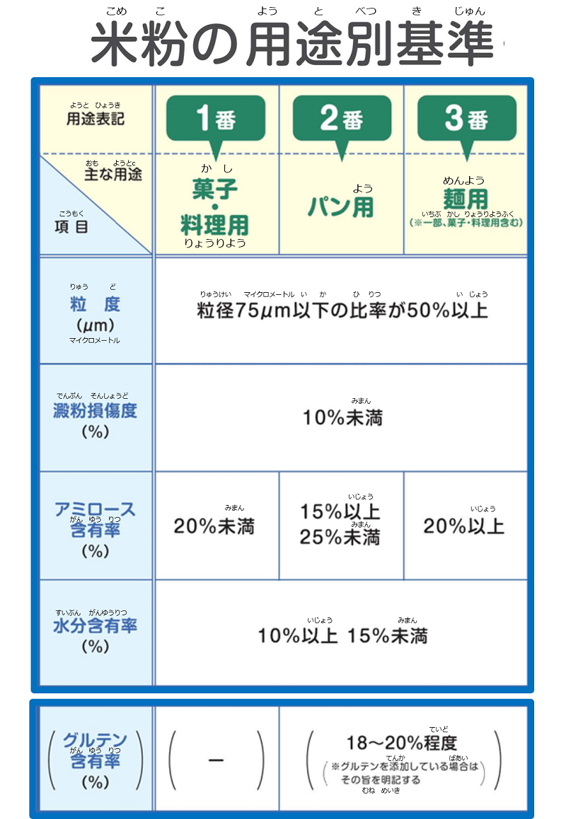 米粉(こめこ)の用途別基準(ようとべつきじゅん)