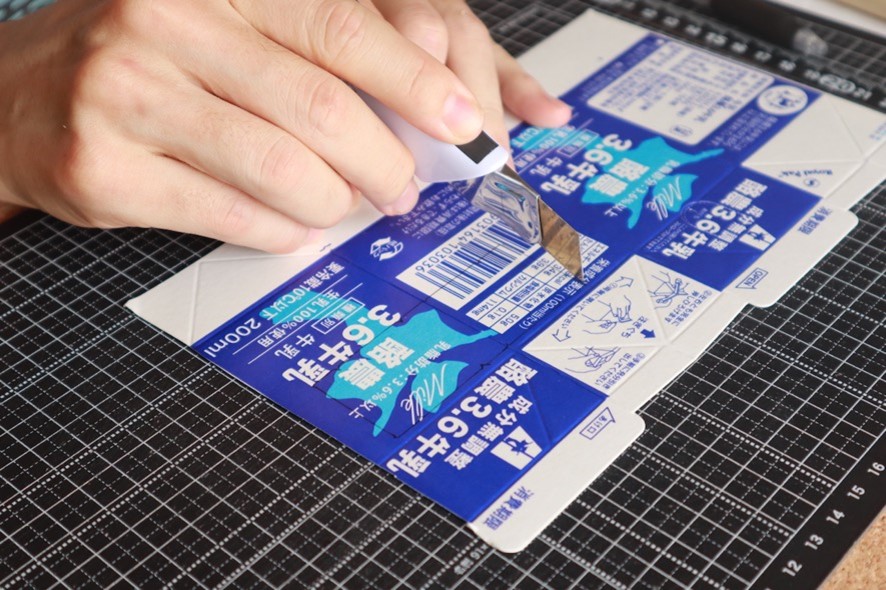 カッターやハサミを使用して、牛乳パックから可愛いところを四角に切り取ります。