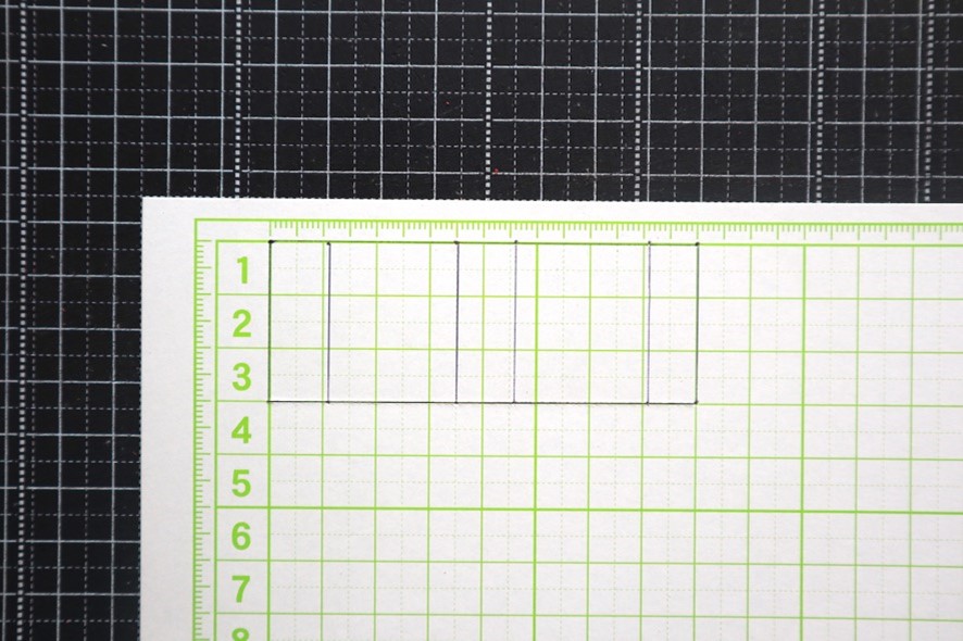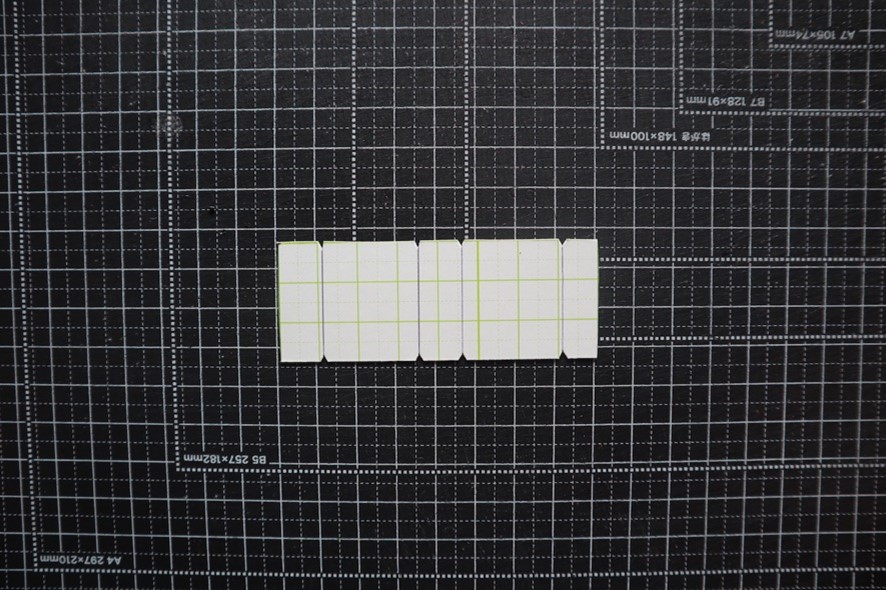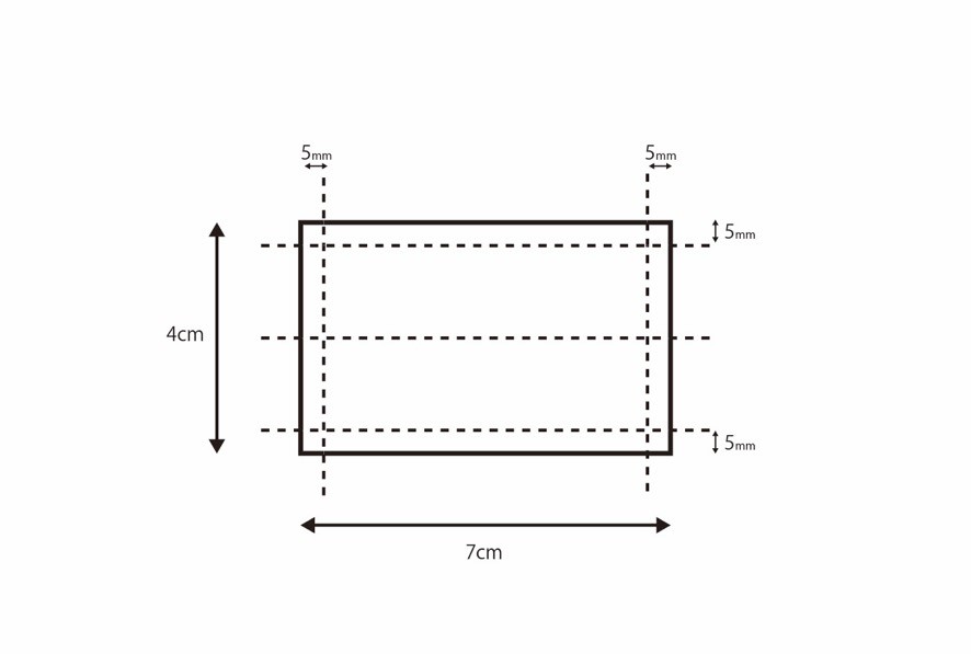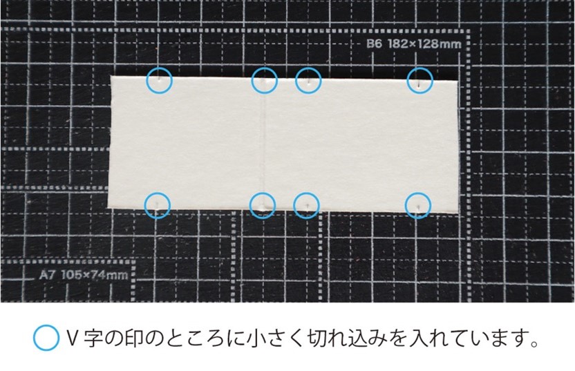 この時、横と奥行きは消しゴムの寸法よりも1mm長くします。折り目をつける目印として、V字に切れ込みを入れます。