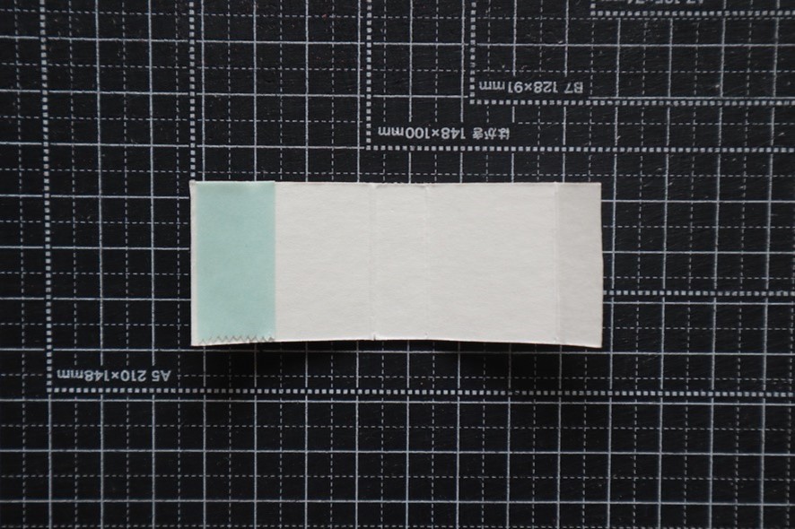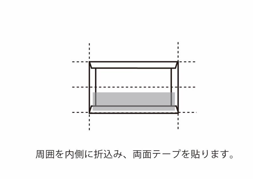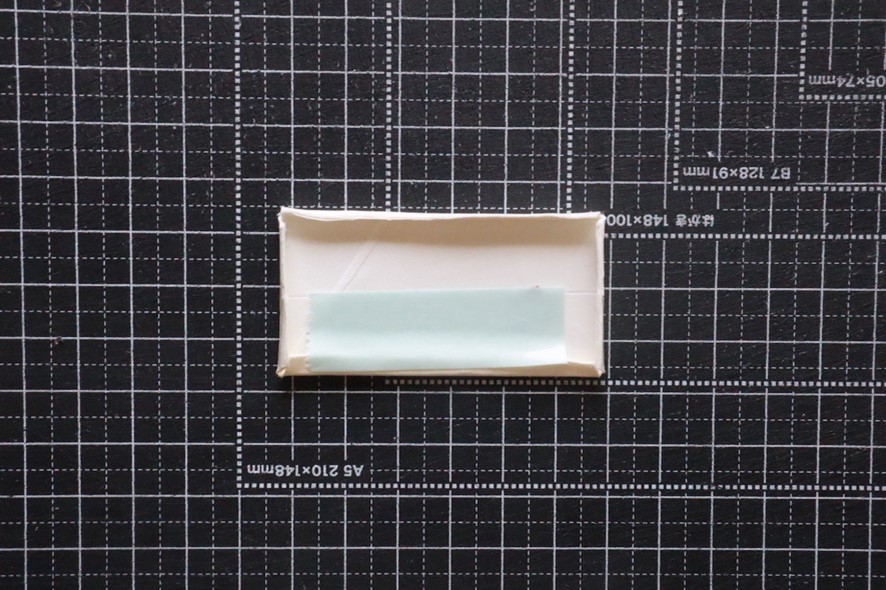 折り目に沿っており、左側面の内側に折込部分を貼り付けて完成です。