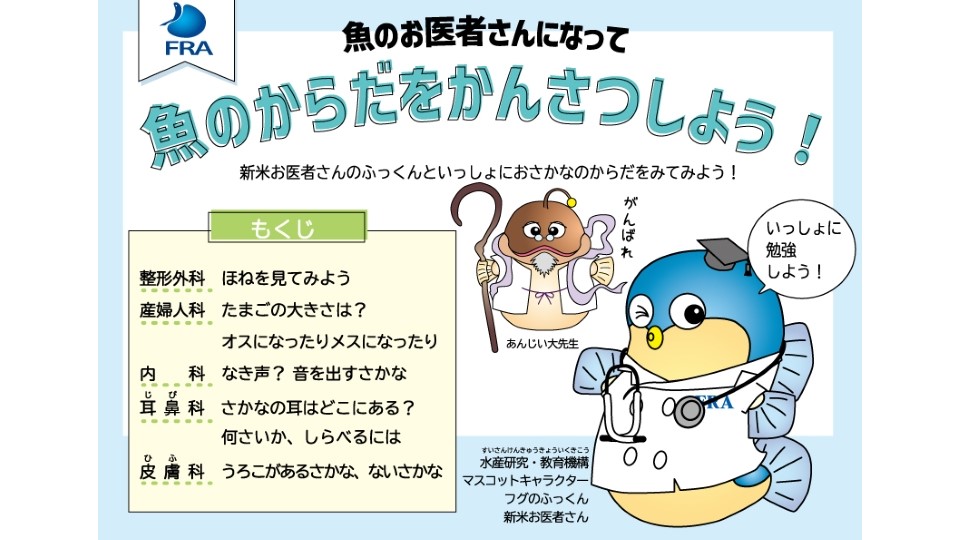 魚のレントゲン写真や骨格の標本、CT輪切り映像などを見ながら、魚の体について学ぼう!