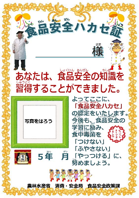 6問以上正解して、食品安全ハカセ証をゲットしましょう!
