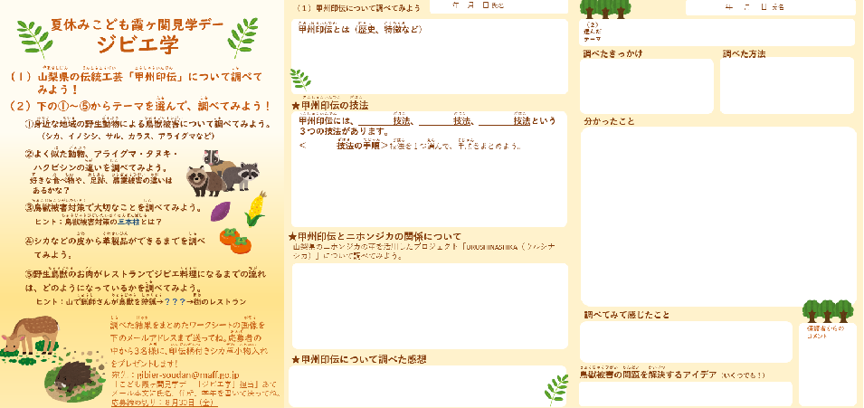 【ジビエ学】自由研究ワークシート(PDF : 614KB)