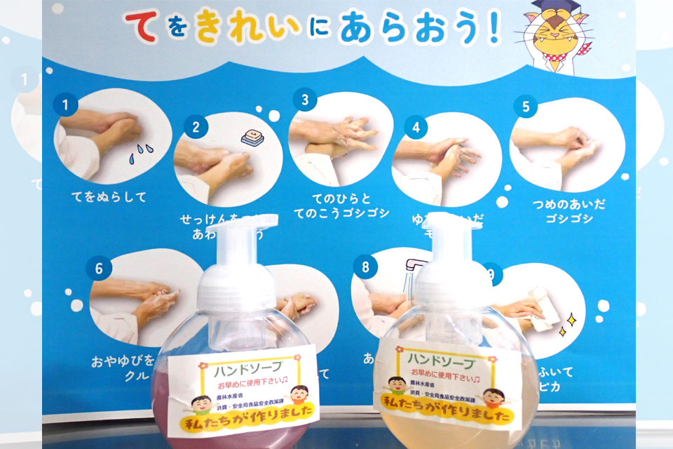 食中毒予防や正しい手洗いをわかりやすく学べるよ!「ハンドソープ」を作って、「手洗いマイスター証」と夏休みの「自由研究用テキスト」をゲットしよう!