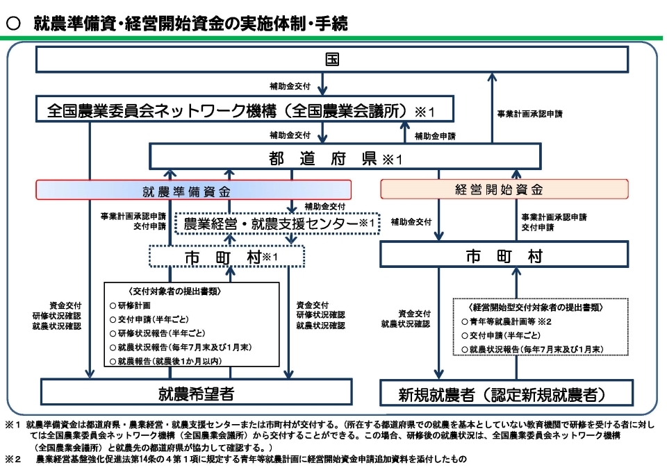 都道府県、市町村、青年農業者等育成センター、全国農業委員会ネットワーク機構