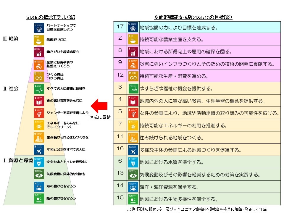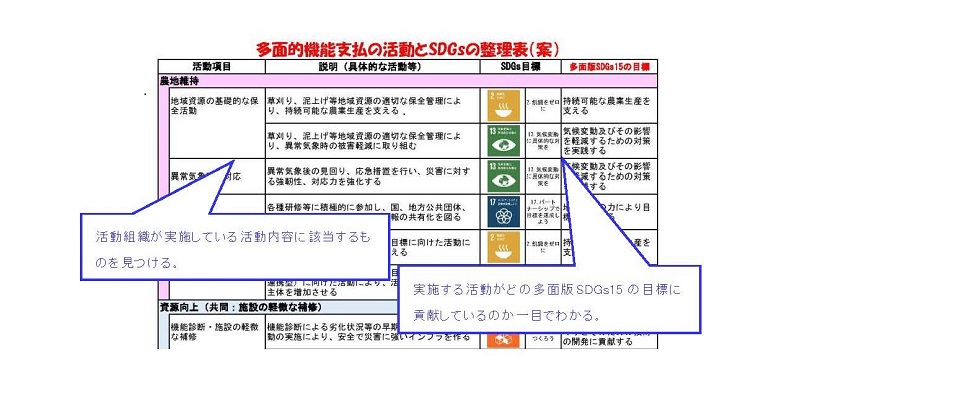 「多面的機能支払交付金の活動とSDGsの整理表(案)」について