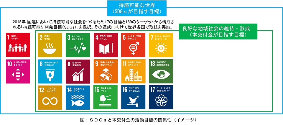 SDGsと本交付金の活動目標は、持続可能な社会を目指す点において共通しており、親和性が高いものと考えられます。