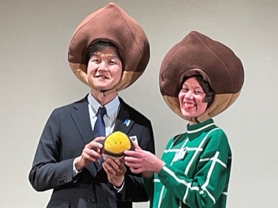 一般社団法人和栗協議会の海外産地交流先であるフランスのコルシカ大教授と記念撮影を行う鈴木農林水産大臣