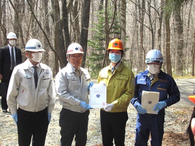 浪江町にて帰還困難区域内の国有林の現地調査を行う鈴木農林水産大臣