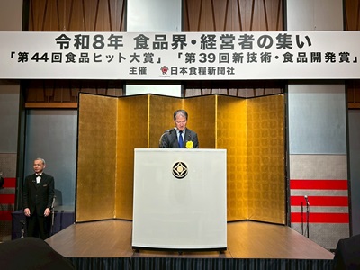 2月24日 広瀬農林水産大臣政務官は、東京都千代田区で開催された日本食糧新聞社主催の令和8年「食品界・経営者の集い」に出席し、祝賀・交流パーティーにおいて祝辞を述べました。