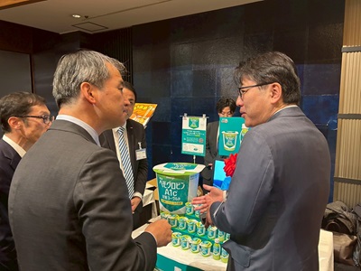 受賞商品の事業者と意見交換する広瀬農林水産大臣政務官