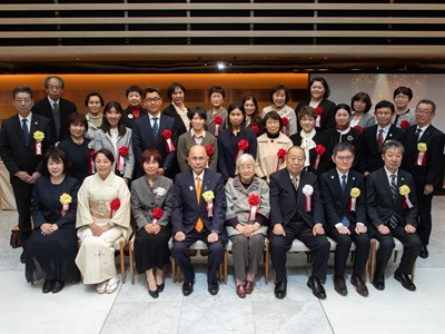 農林水産大臣賞受賞者と根本農林水産副大臣(中央)