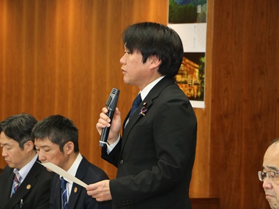 協定締結企業に挨拶を述べる山下農林水産副大臣