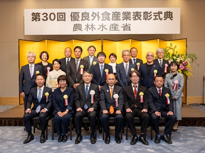3月16日 根本農林水産副大臣は、東京都千代田区で開催された「第30回優良外食産業表彰式典」に出席し、祝辞を述べるとともに、受賞者に対し、農林水産大臣賞の授与を行いました。