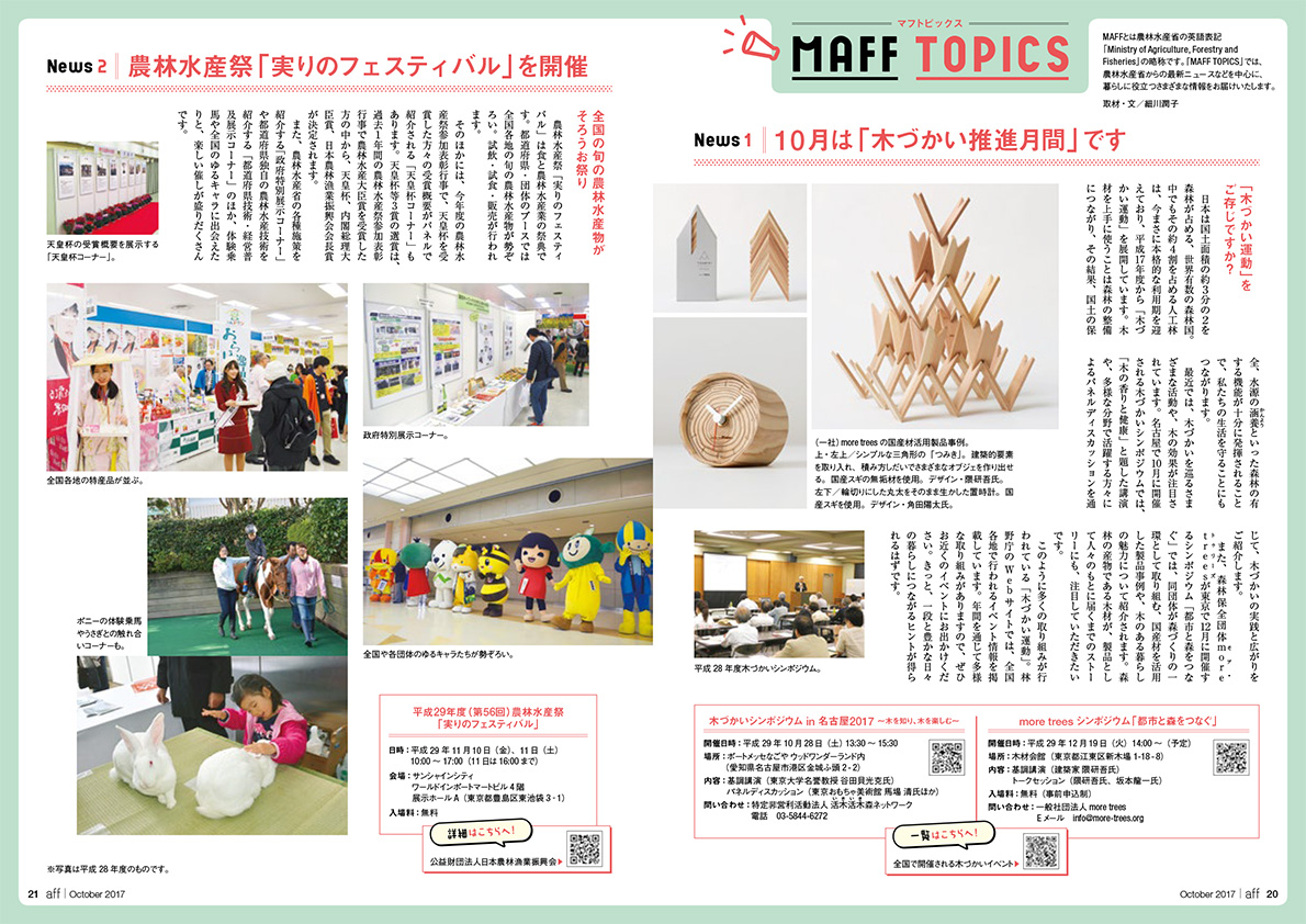 MAFF TOPICS(1) NEWS 10月は「木づかい推進月間」です
