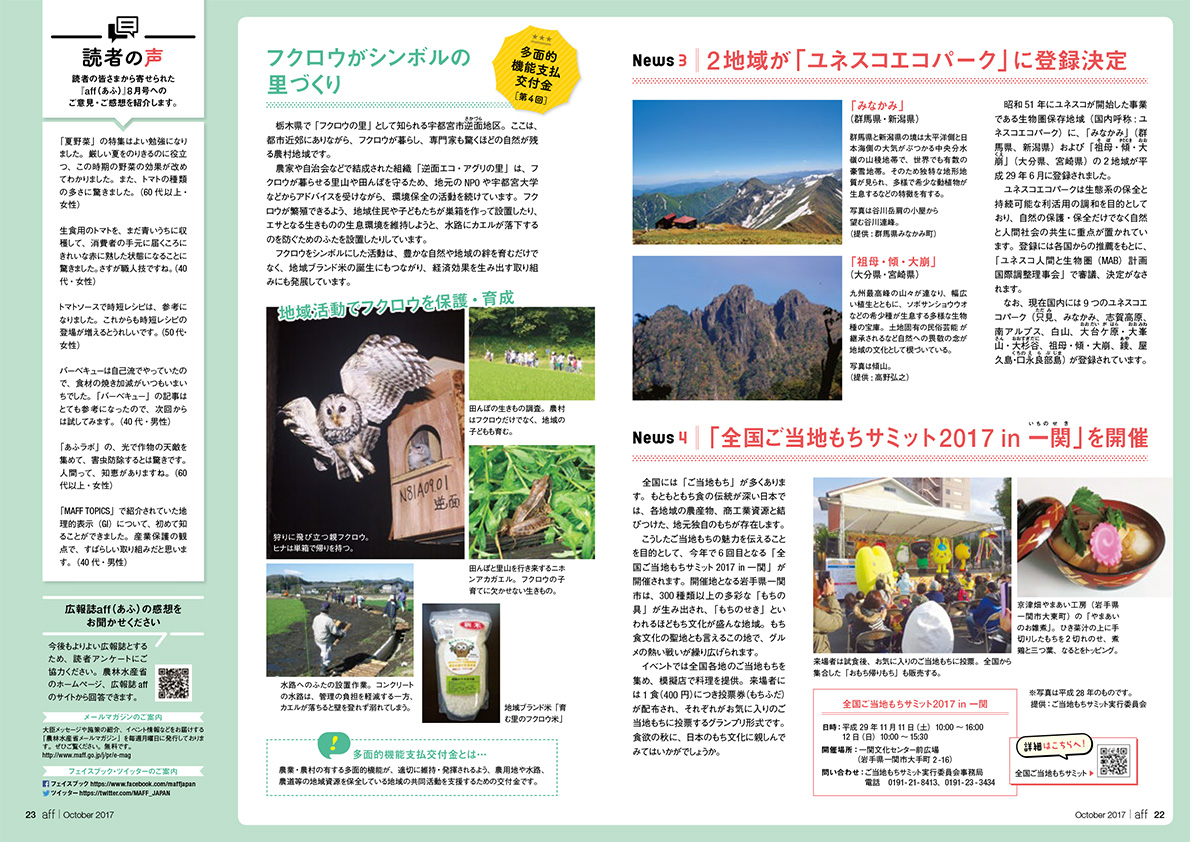 MAFF TOPICS(2) NEWS 2地域が「ユネスコエコパーク」に登録決定
