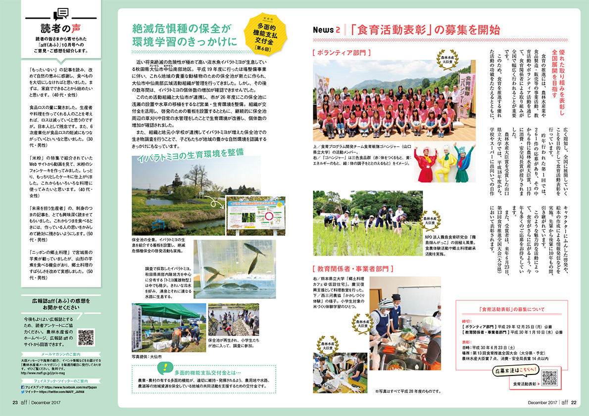 MAFF TOPICS(2) NEWS 「食育活動表彰」の募集を開始